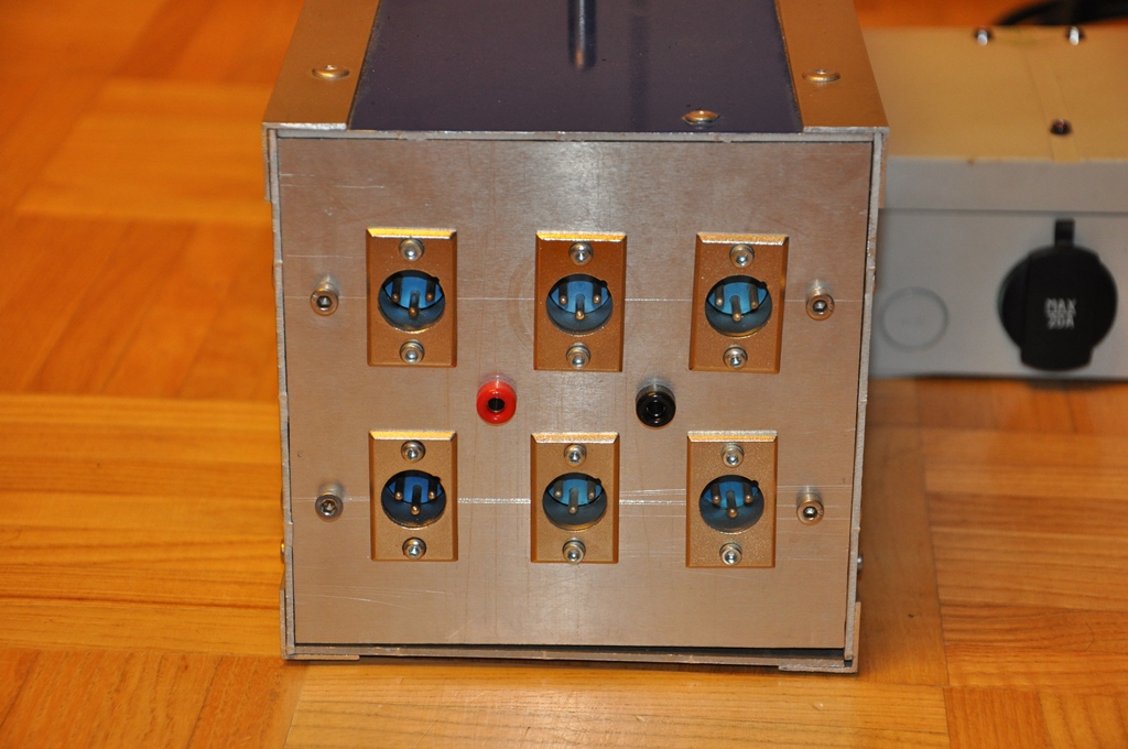 Heraus kam der kleine Kasten der auf den Bildern zu sehen ist. Im Inneren verrichten 2 12V Blei-Gel-Akkus mit je 6 Ah ihren Dienst. Das Reicht in meinem Fall für mindestens 6h Teleskopbetrieb. Natürlich hätte man aus Gewichts und Leistungsdichtegründen andere Akkus verbauen können. Mir war jedoch wichtig dass sie beim Laden relativ unempfindlich sind und von der Leistungsausbeute her nicht zu sehr Temperaturabhängig sind. Das Frontpanel ist aus Plexiglas gefertigt und dient als Halter für den Powermonitor, welcher ein fertiges Modul von Neuhold Elektronik ist. Er zeigt nicht nur die Akkuspannung an, sondern auch den Stromverbrauch und sie aktuelle Leistungsabgabe. Da dieses Modul max. 20A aushält wurde der Gesamtstrom mittels Sicherung auf 15A begrenzt. Für den Tiefenentladeschutz ist ein Schutzmodul verbaut. Um das Relais auf der Platine nicht zu sehr zu strapazieren habe ich zum schalten des Verbraucherstroms ein leistungsfähiges KFZ Relais eingebaut. Als Anschlüsse für die Verbraucher dienen XLR Stecker. Eigentlich müsste man Buchsen verwenden aber diese waren in der Bauform nicht Vorrätig somit war das leider eine Kompromisslösung. Geladen werden die 2 Akkus von einem externen Ladegerät welches über die zwei Bananenbuchsen an der Rückseite angesteckt wird. Im Prinzip ist das Ganze so Simpel wie möglich gehalten so dass es sich gar nicht auszahlt einen Schaltplan zu veröffentlichen.