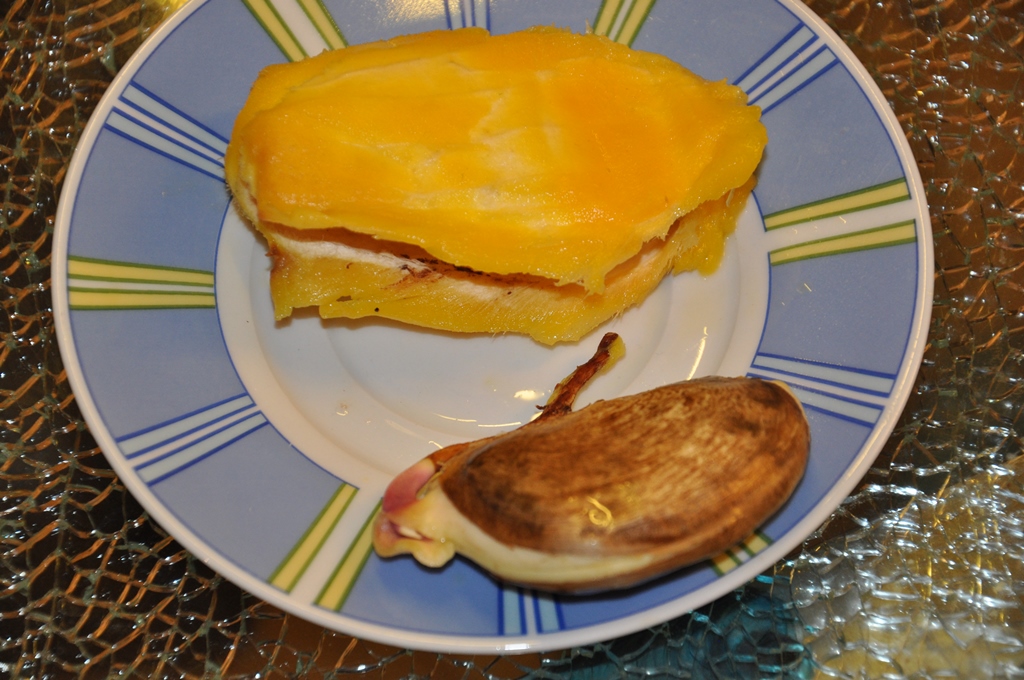 - Den Kern der Mango so gut wie geht vom Fruchtfleisch befreien bis man den vermeintlich richtigen Kern in der Hand hält